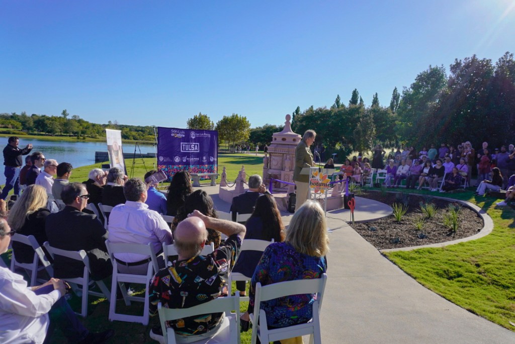 “May this fountain serve for generations as a place of reflection, learning and connection, and as a reminder of the friendship between our two great cities,” Tulsa Deputy Mayor Krystal Reyes said during the ribbon cutting ceremony.