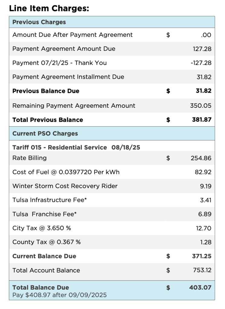 There are also a set of other charges from local government agencies. The infrastructure and franchise fees provide revenue to the city and in return allow PSO to access public streets to operate the power grid.